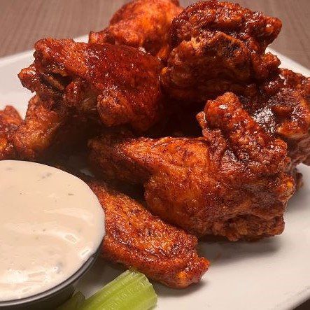 Served with celery sticks and choice of blue cheese or ranch dressing. Extra charge for all flats or all drumsticks.